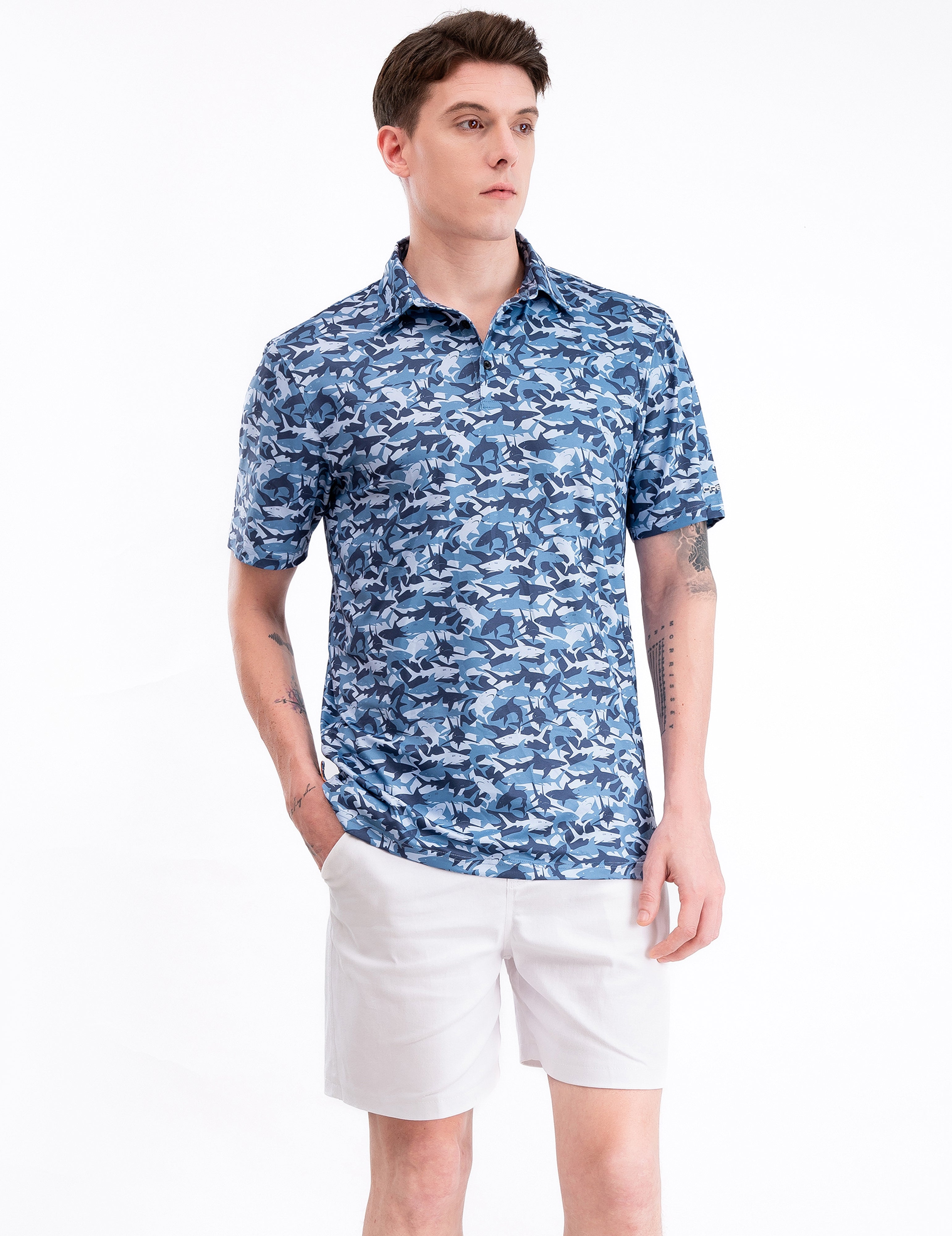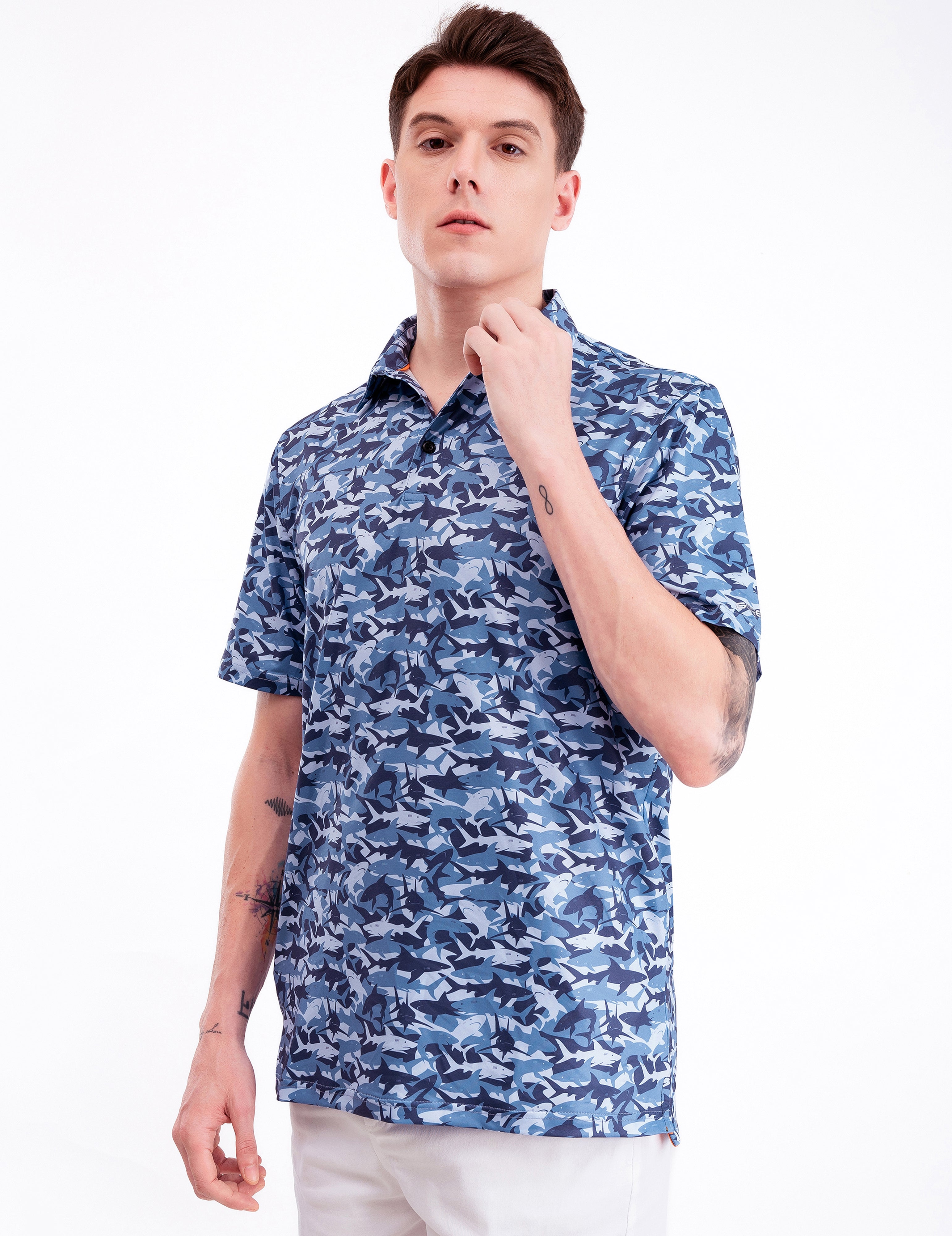 Camoflauge Shark Wave Golf Polo Shirt for Men
