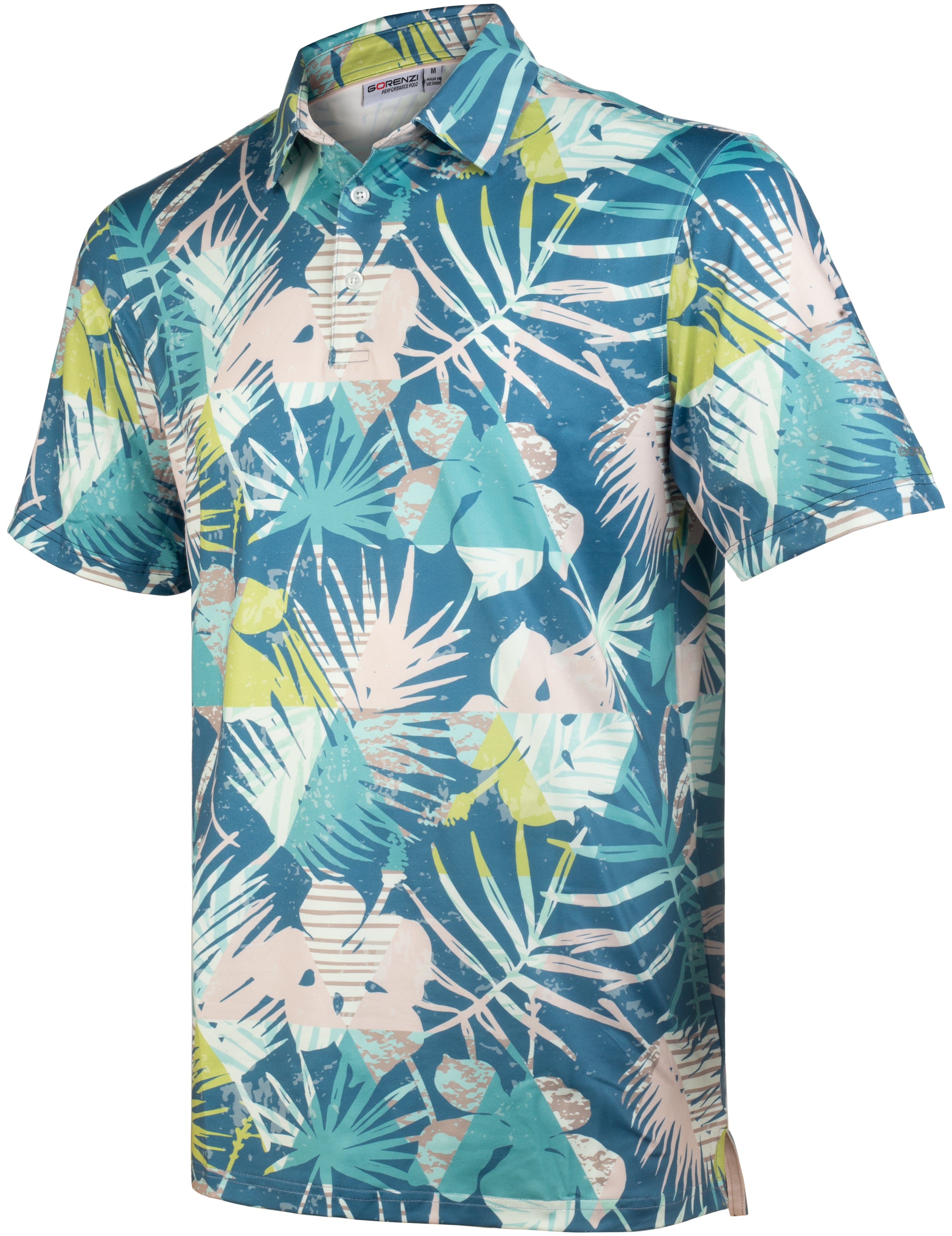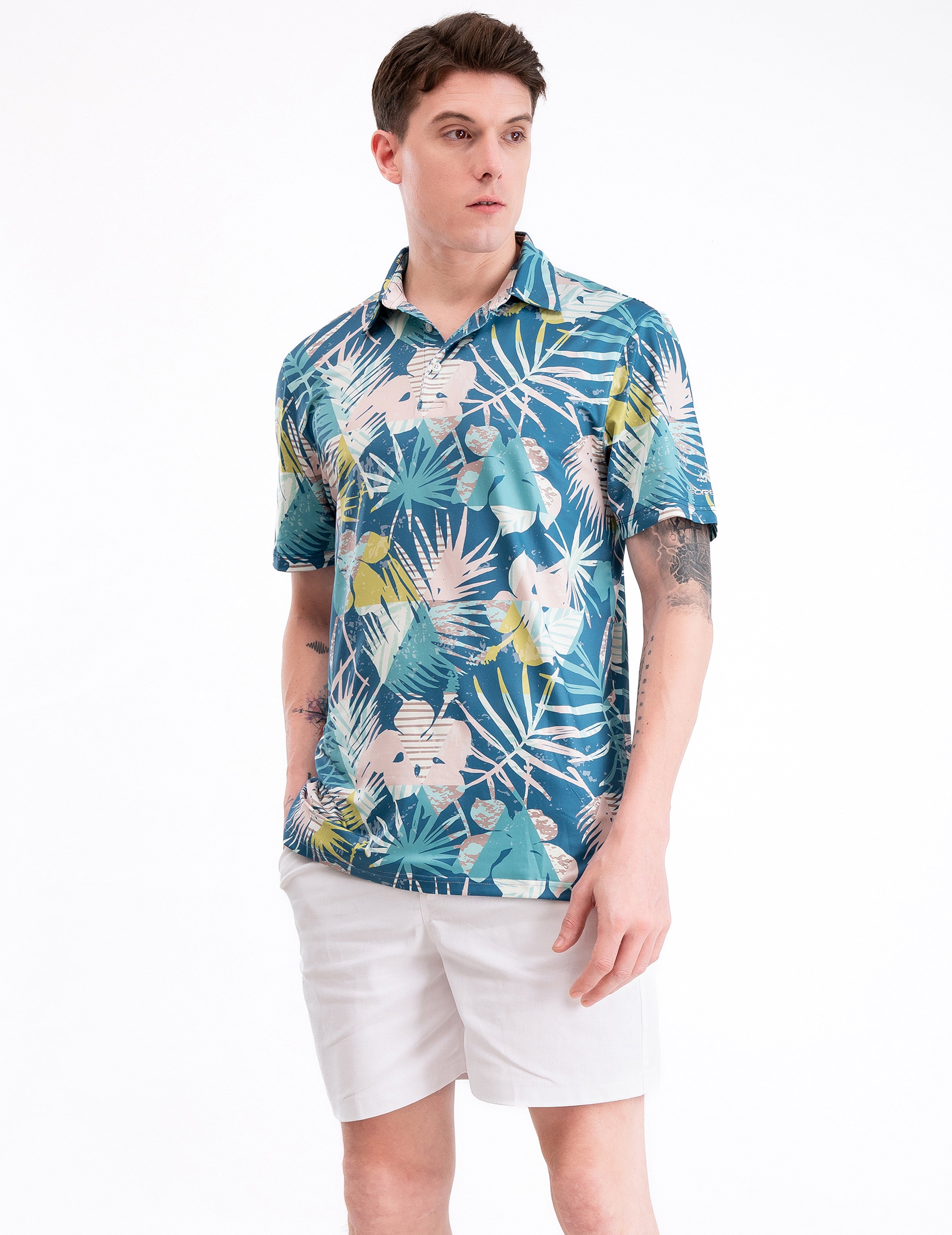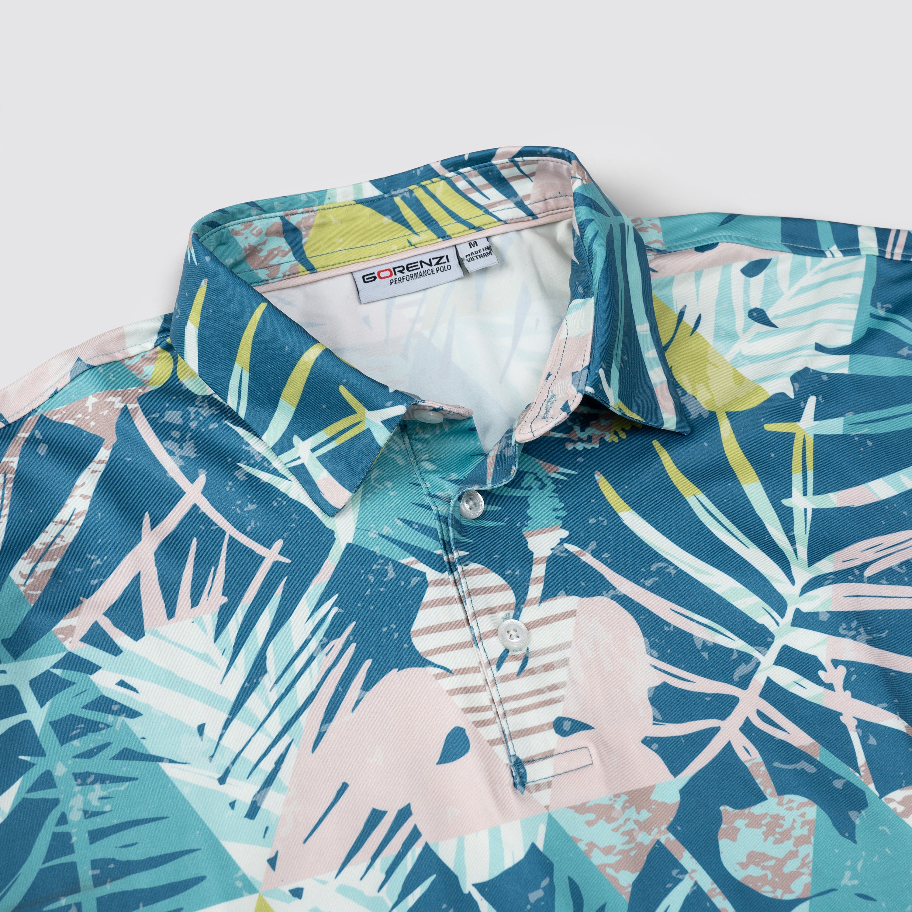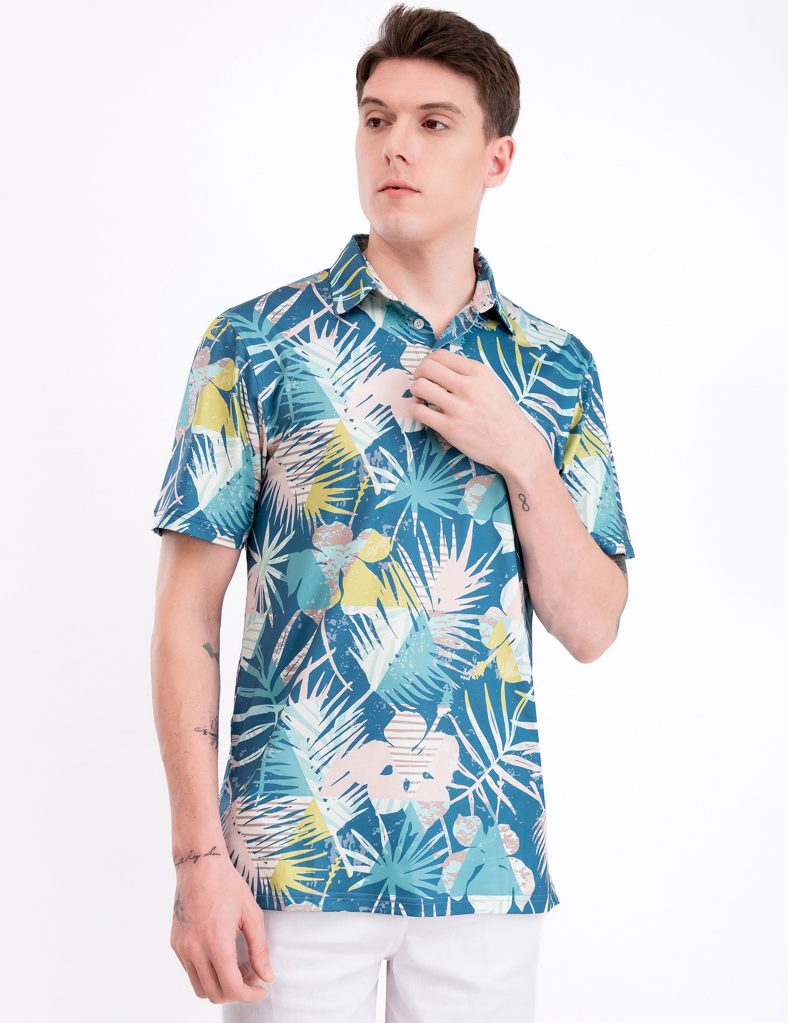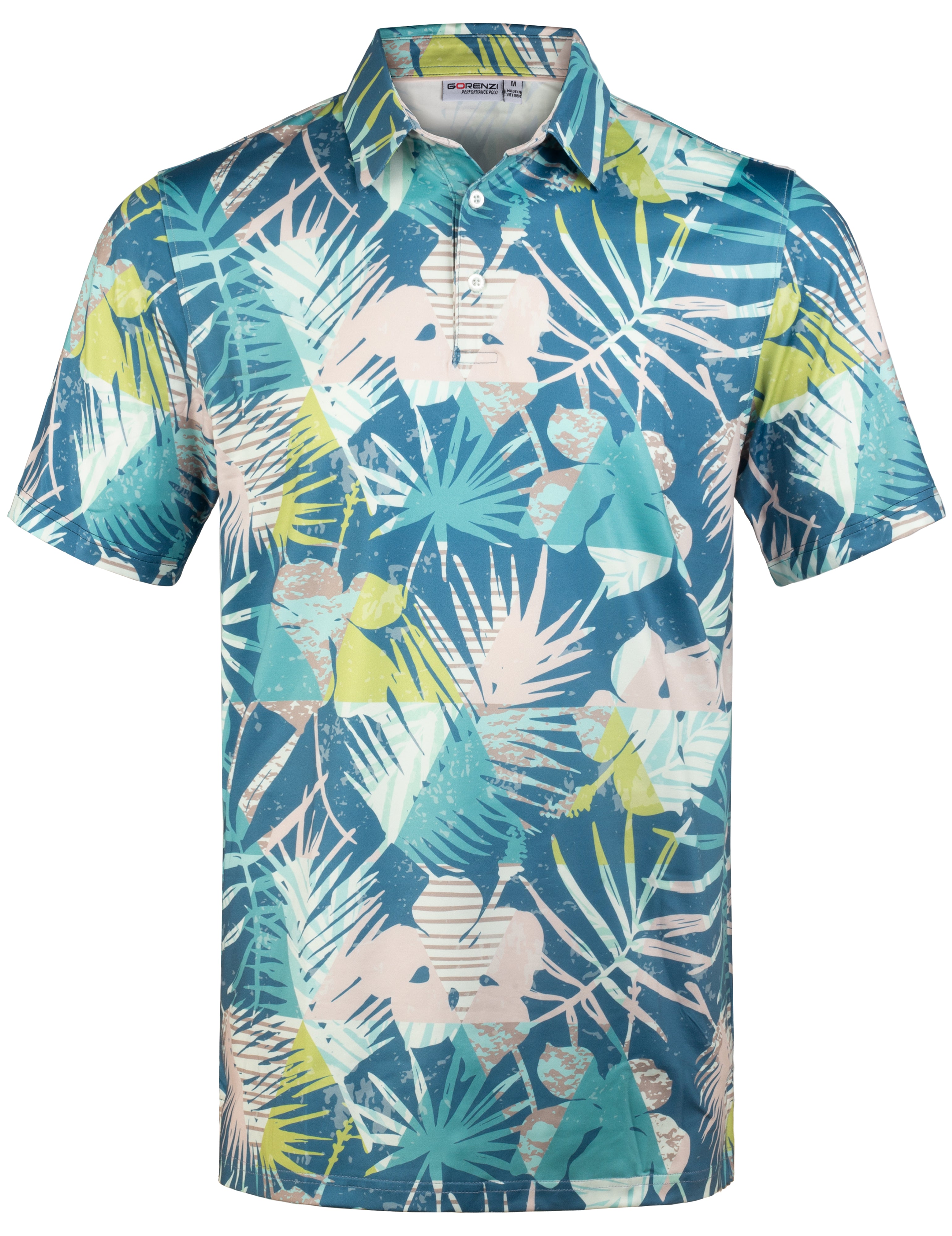 Green Geometric Floral Tropical Golf Polo Shirt for Men