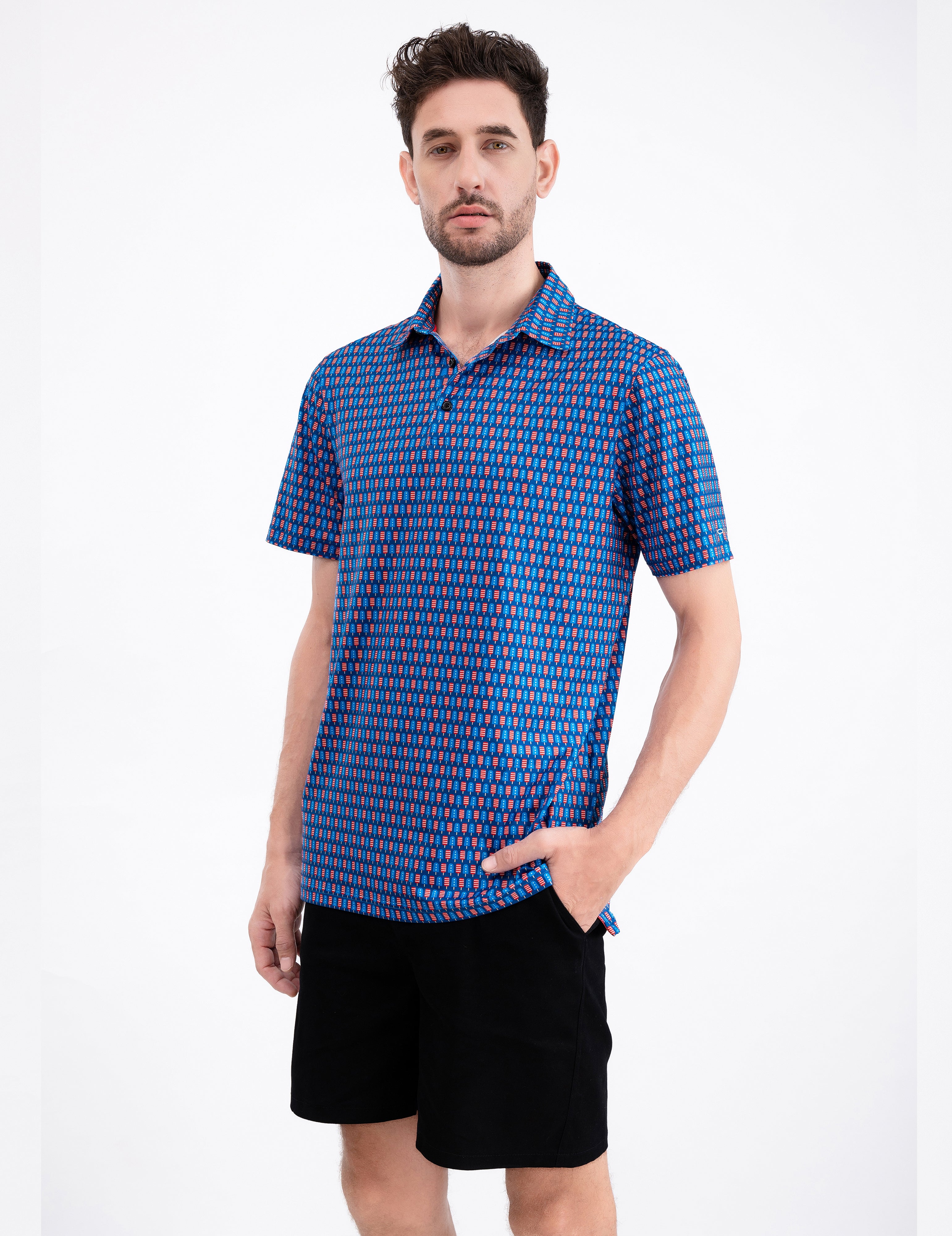 Patriotic Ice Cream USA Golf Polo Shirt for Men