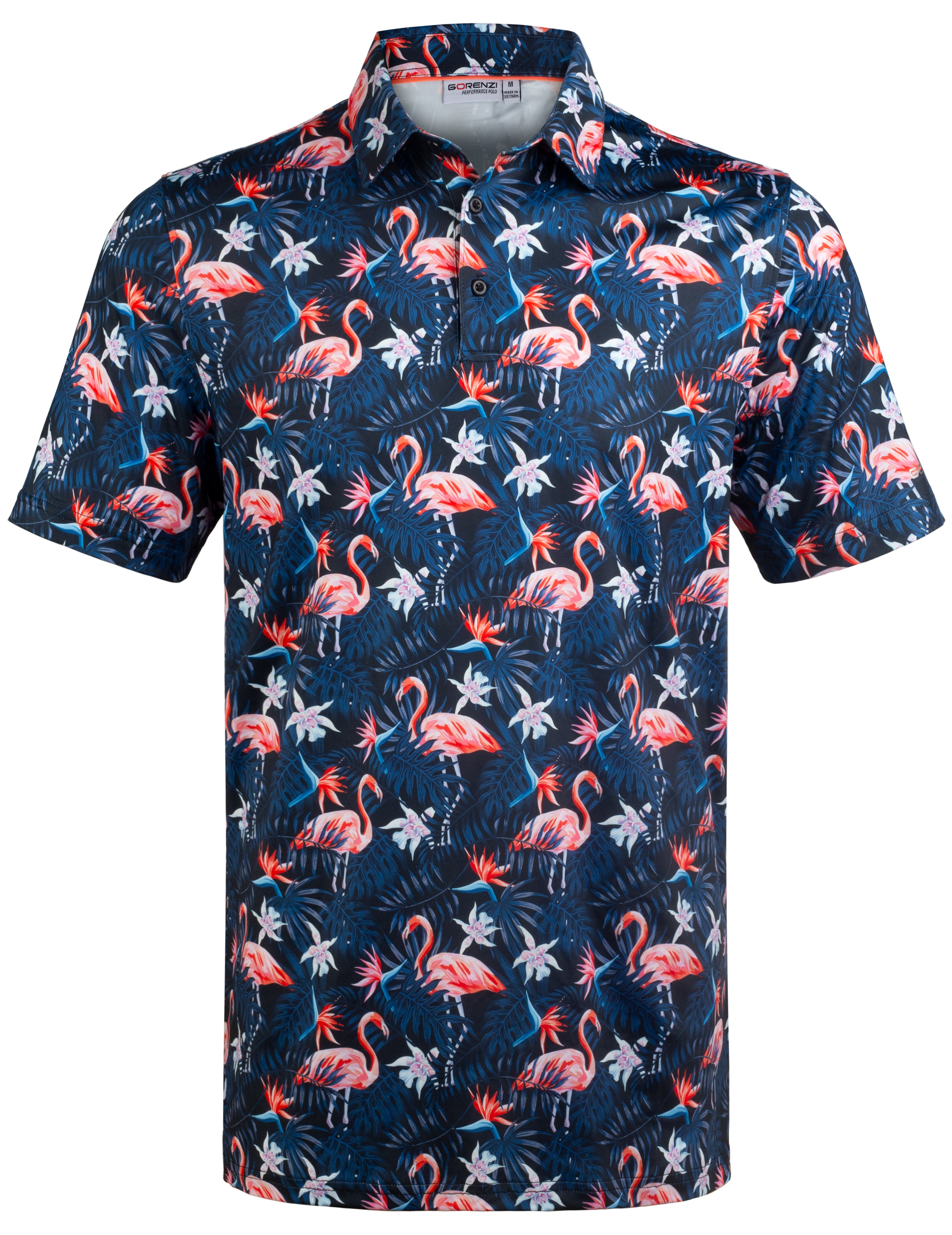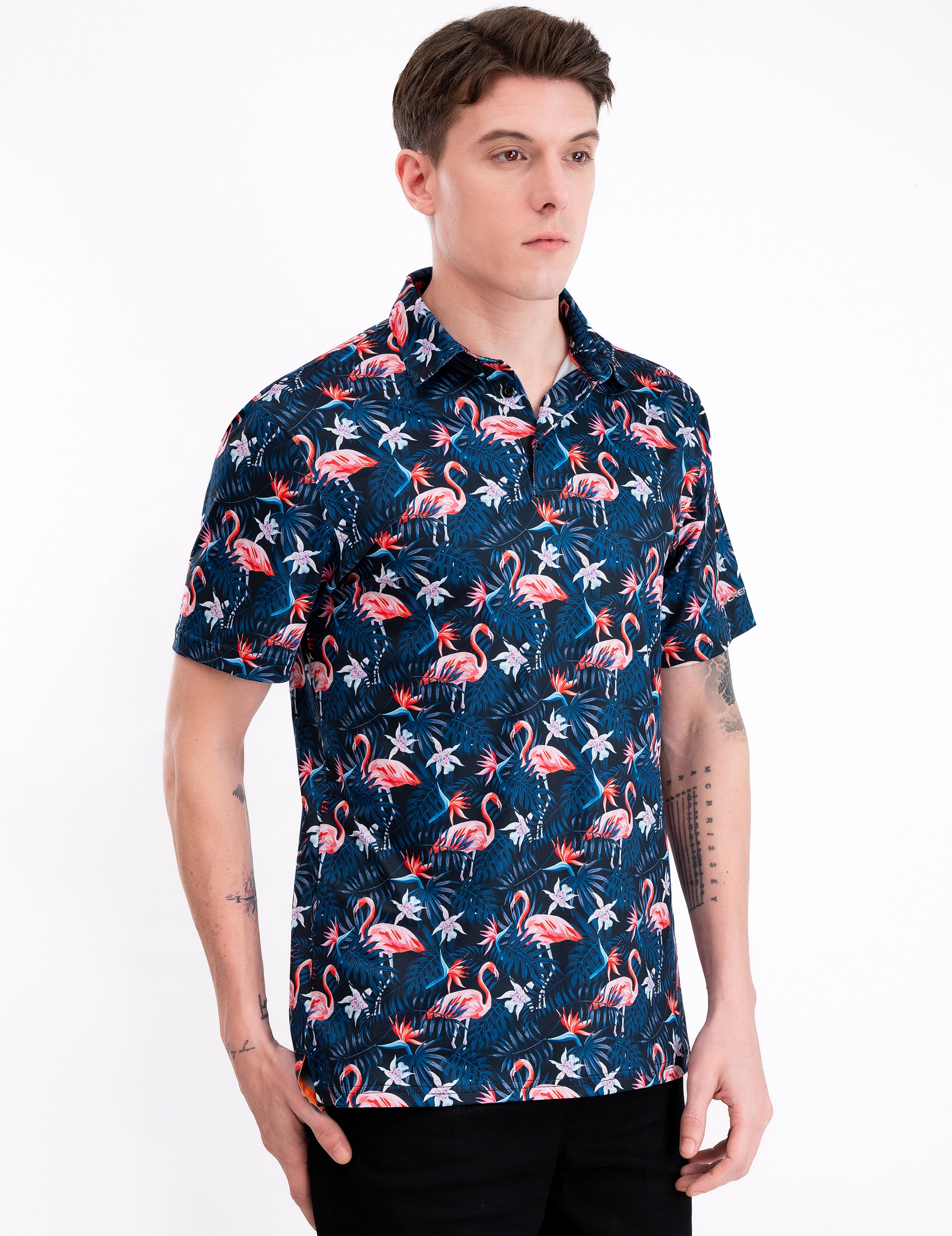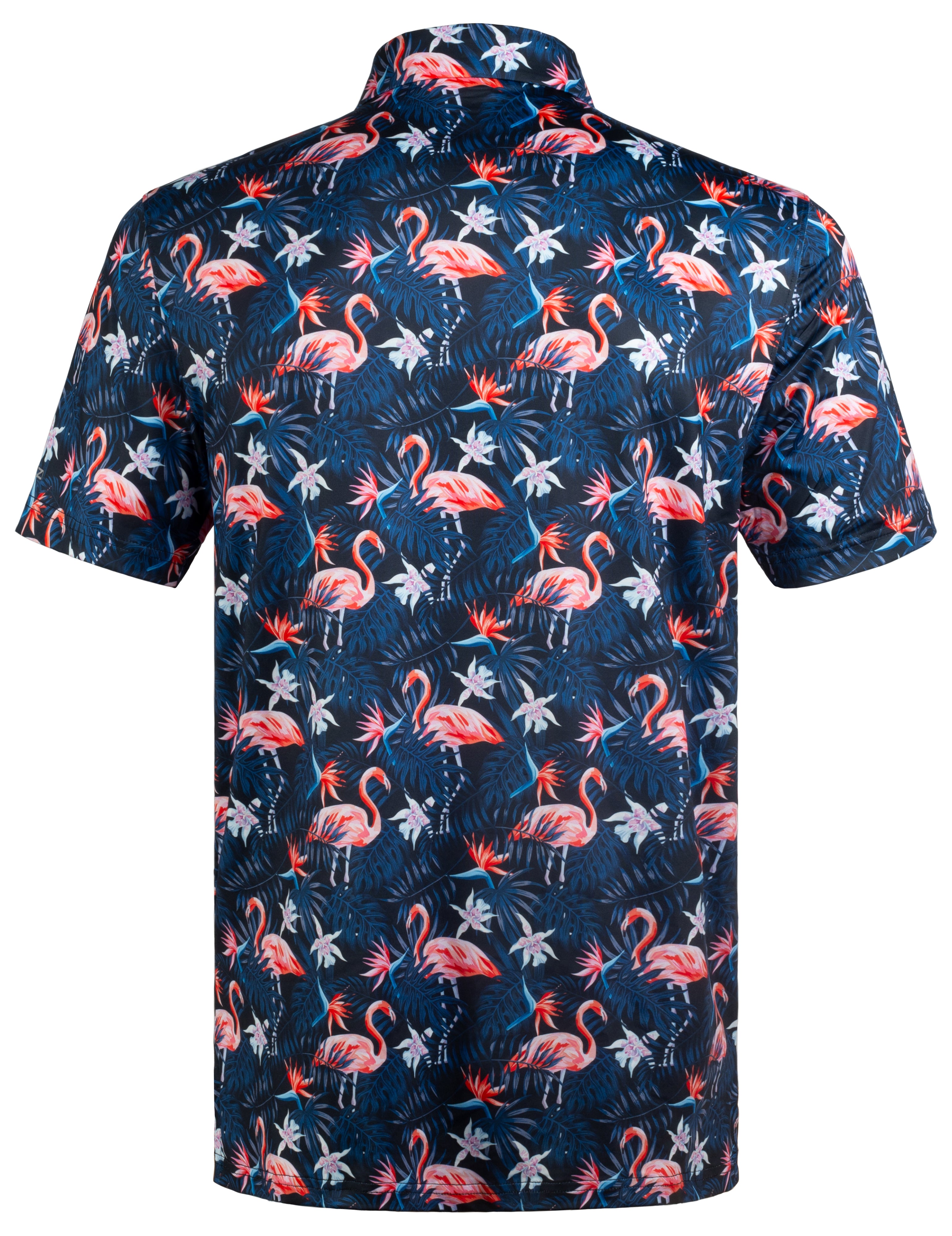 Navy Flamingo Tropical Floral Leaf Golf Polo Shirt for Men