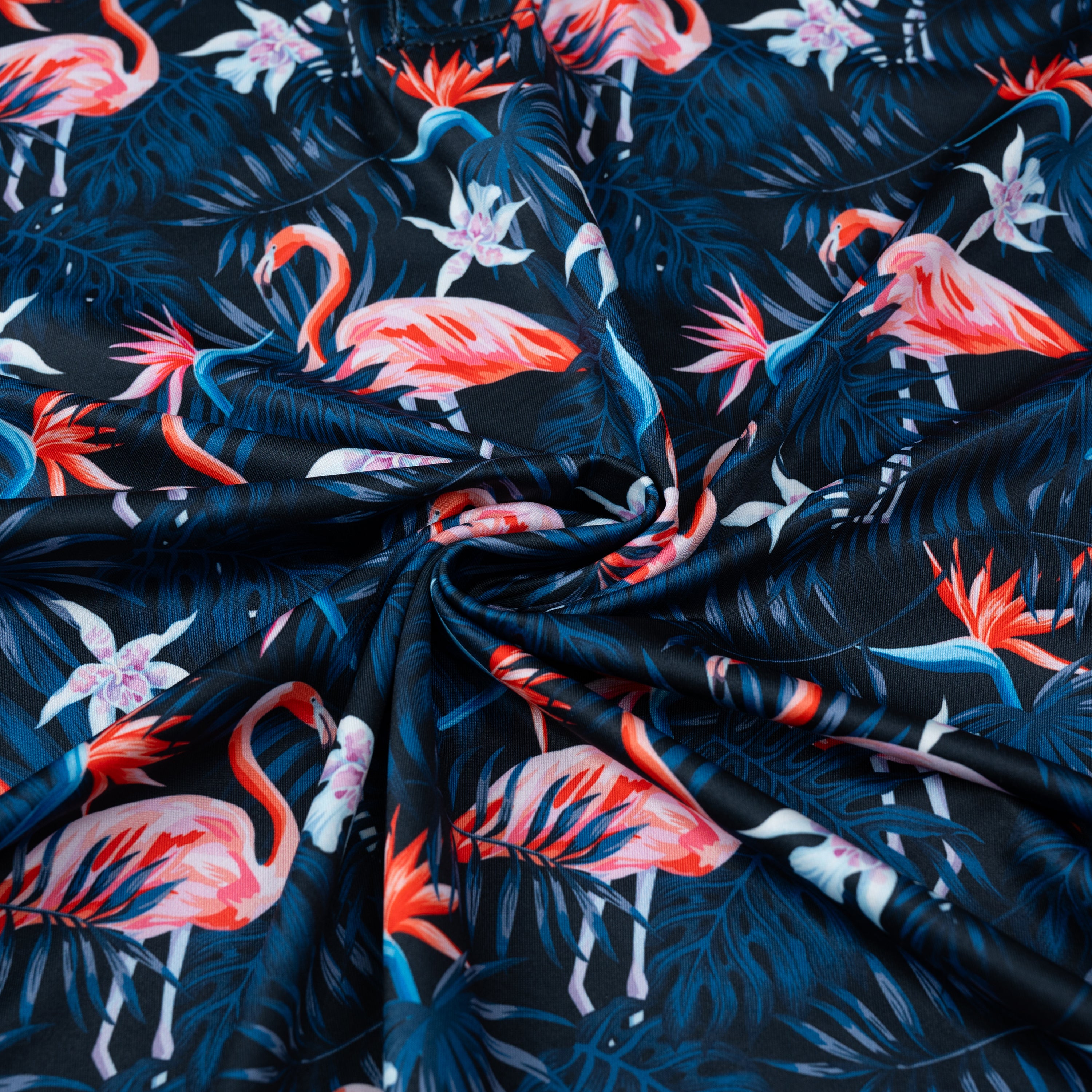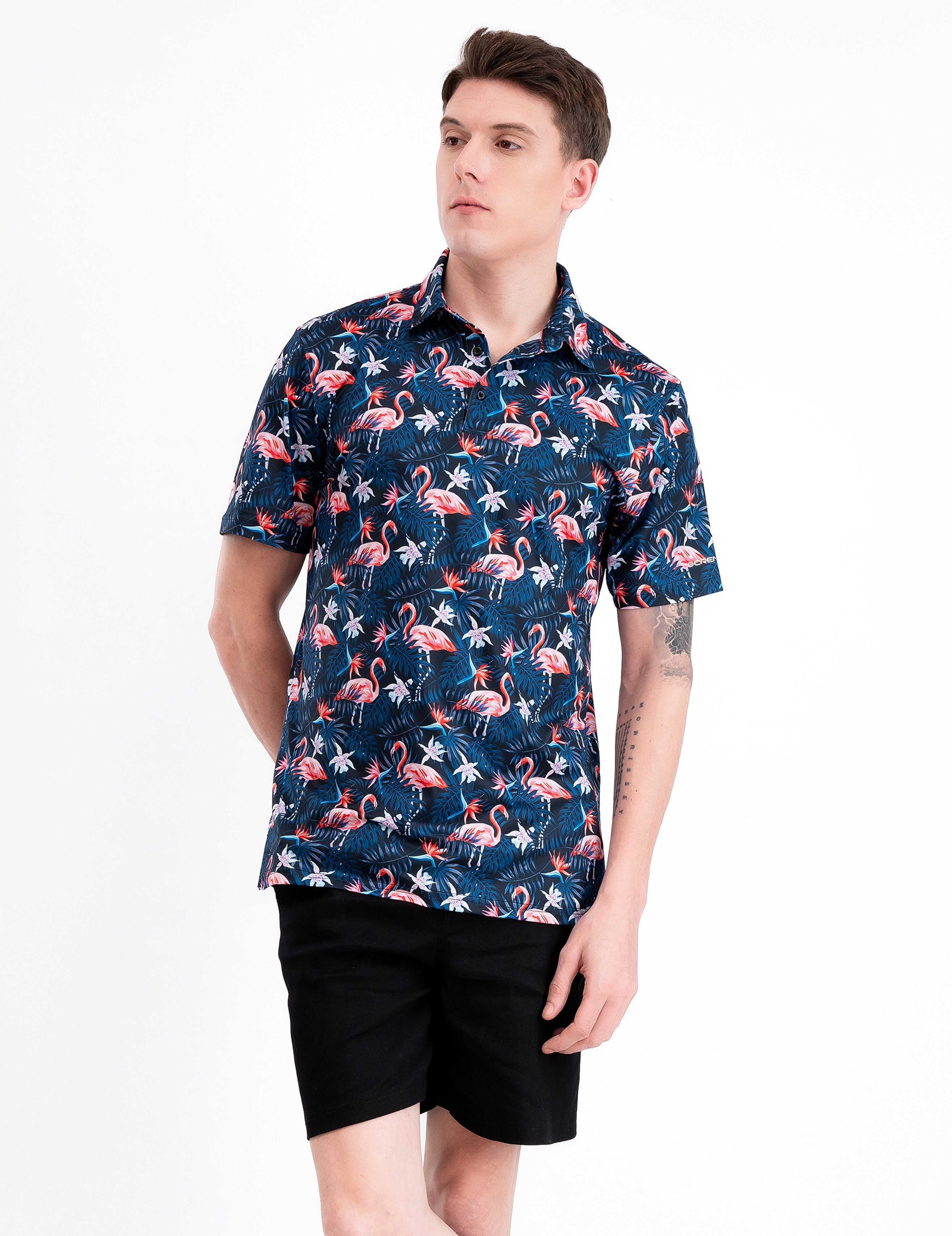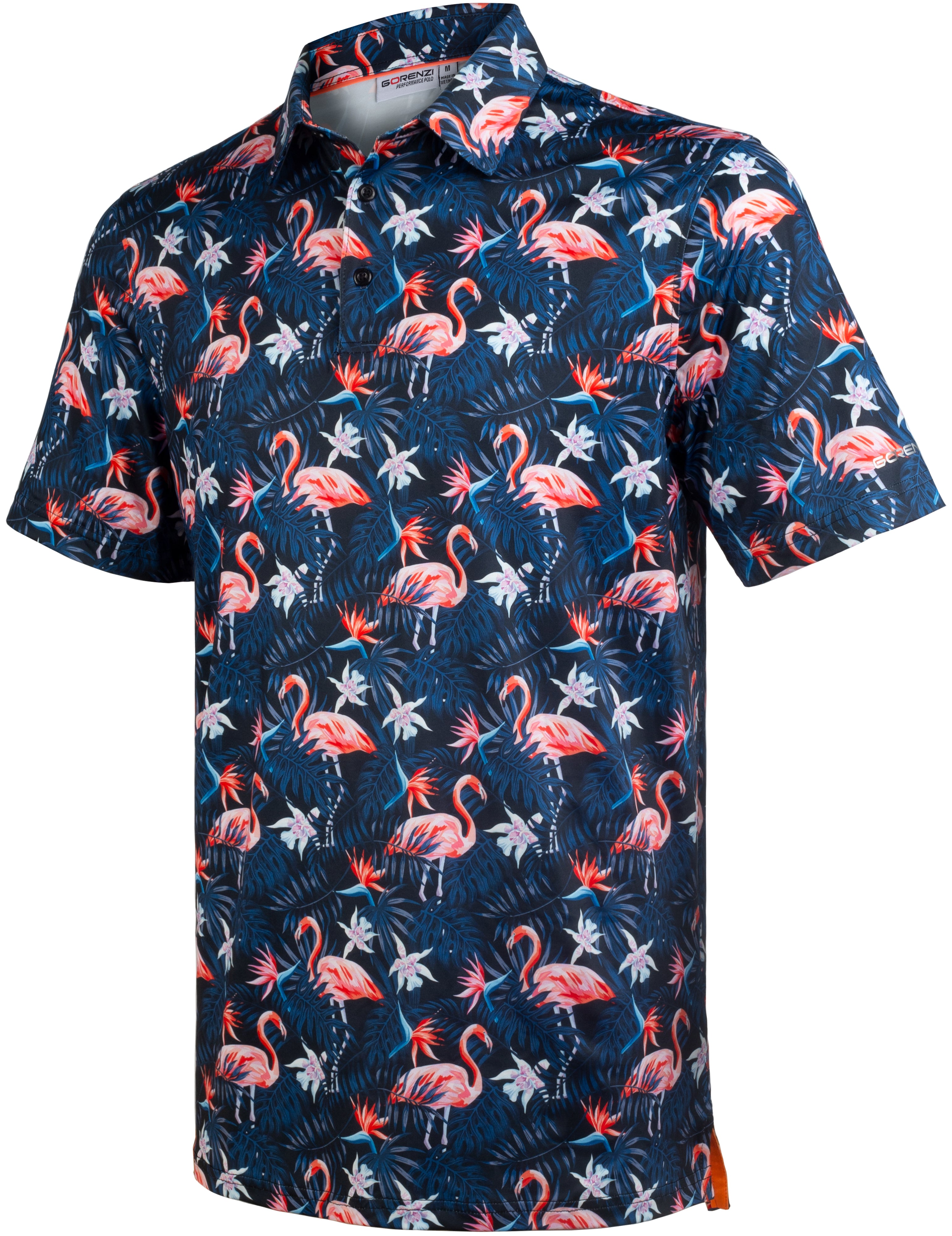 Navy Flamingo Tropical Floral Leaf Golf Polo Shirt for Men