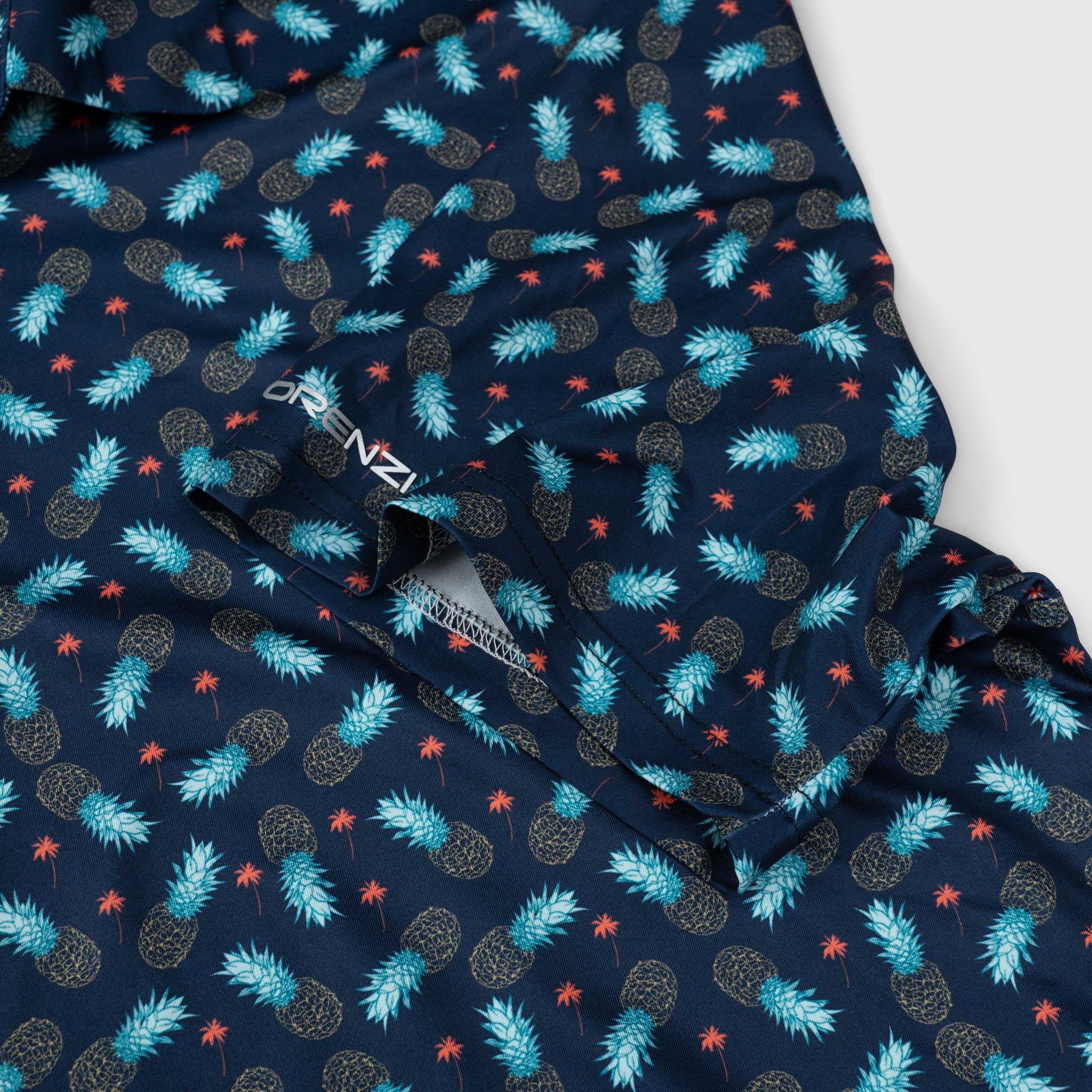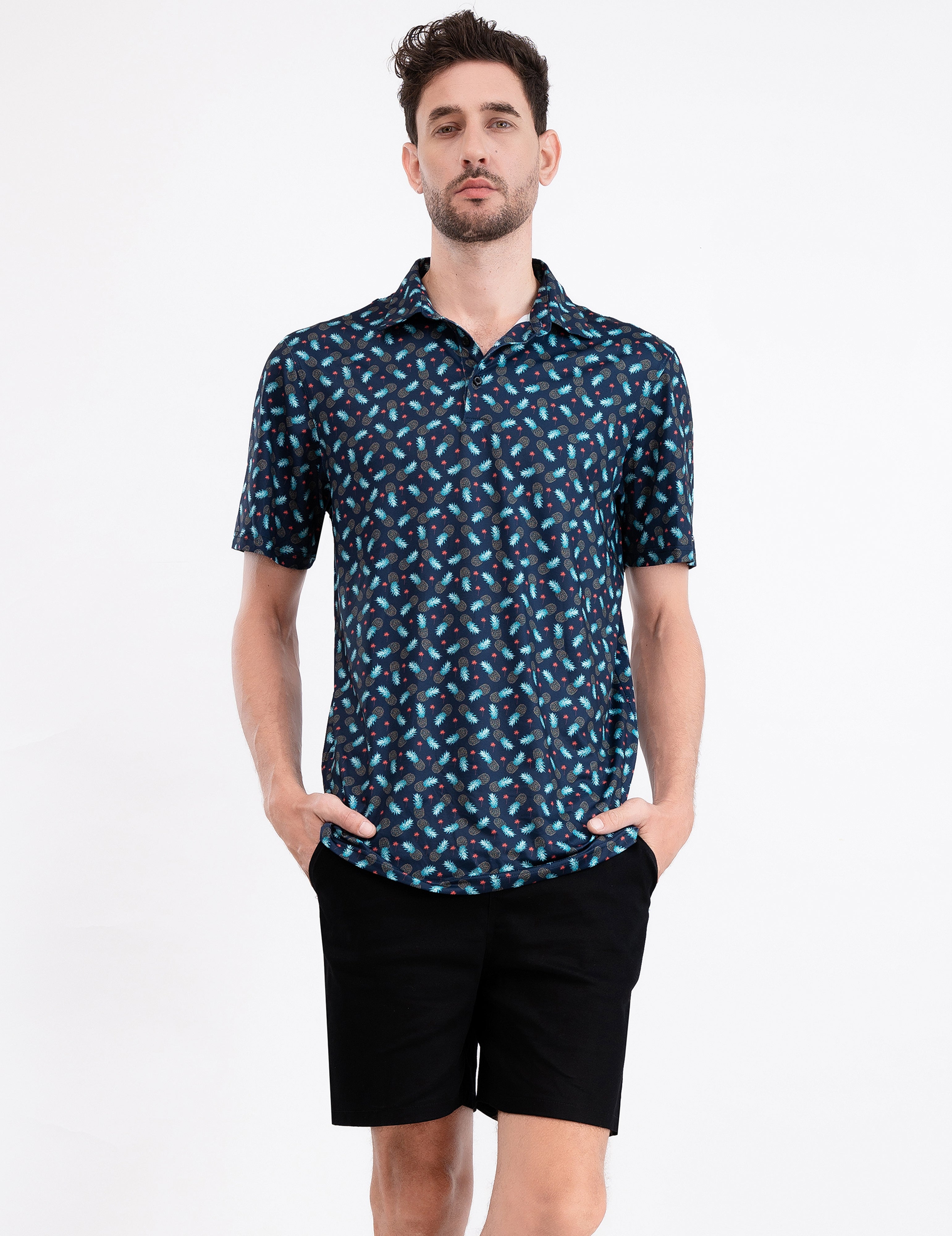 Navy Pineapple Tropical Coconut Tree Golf Polo Shirt for Men