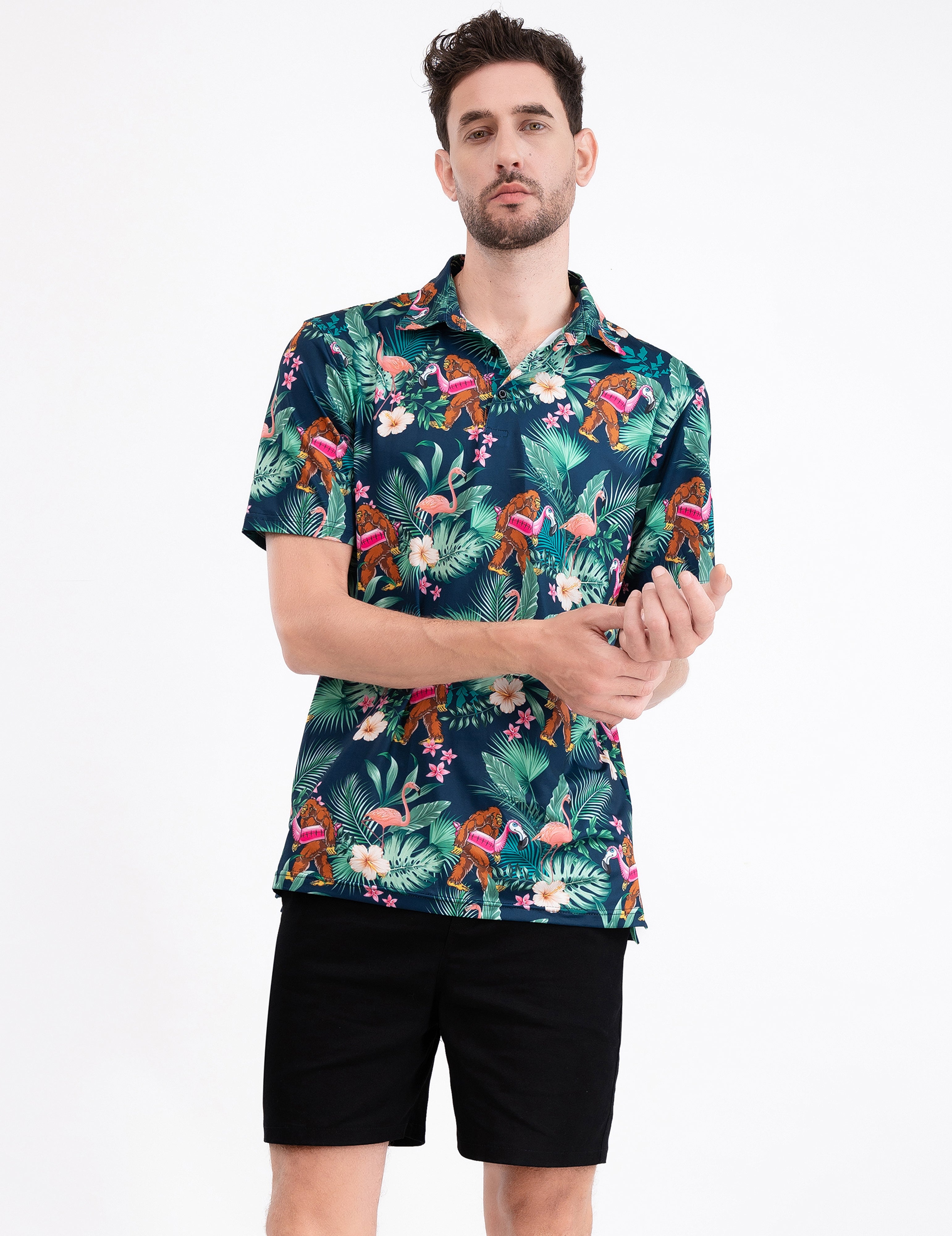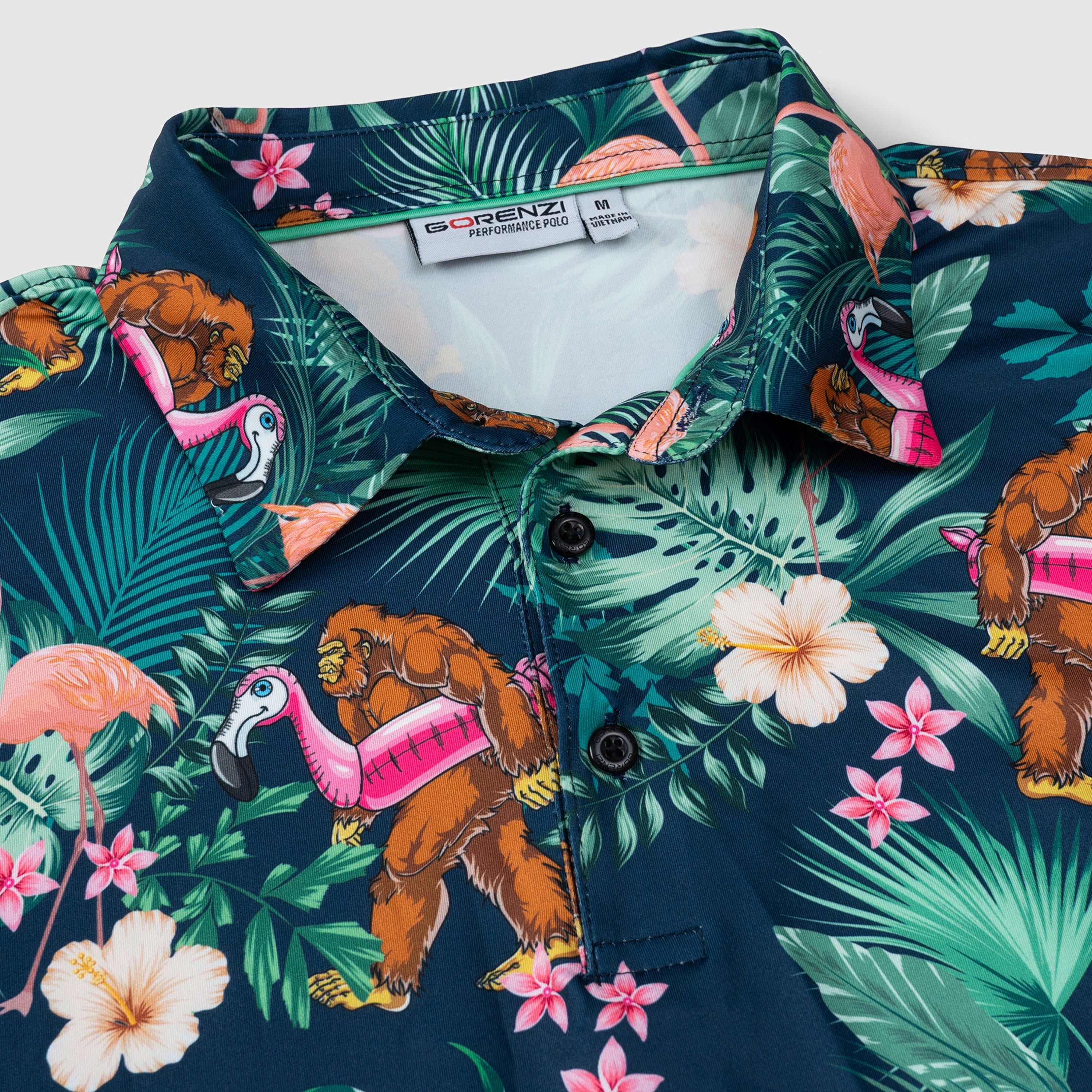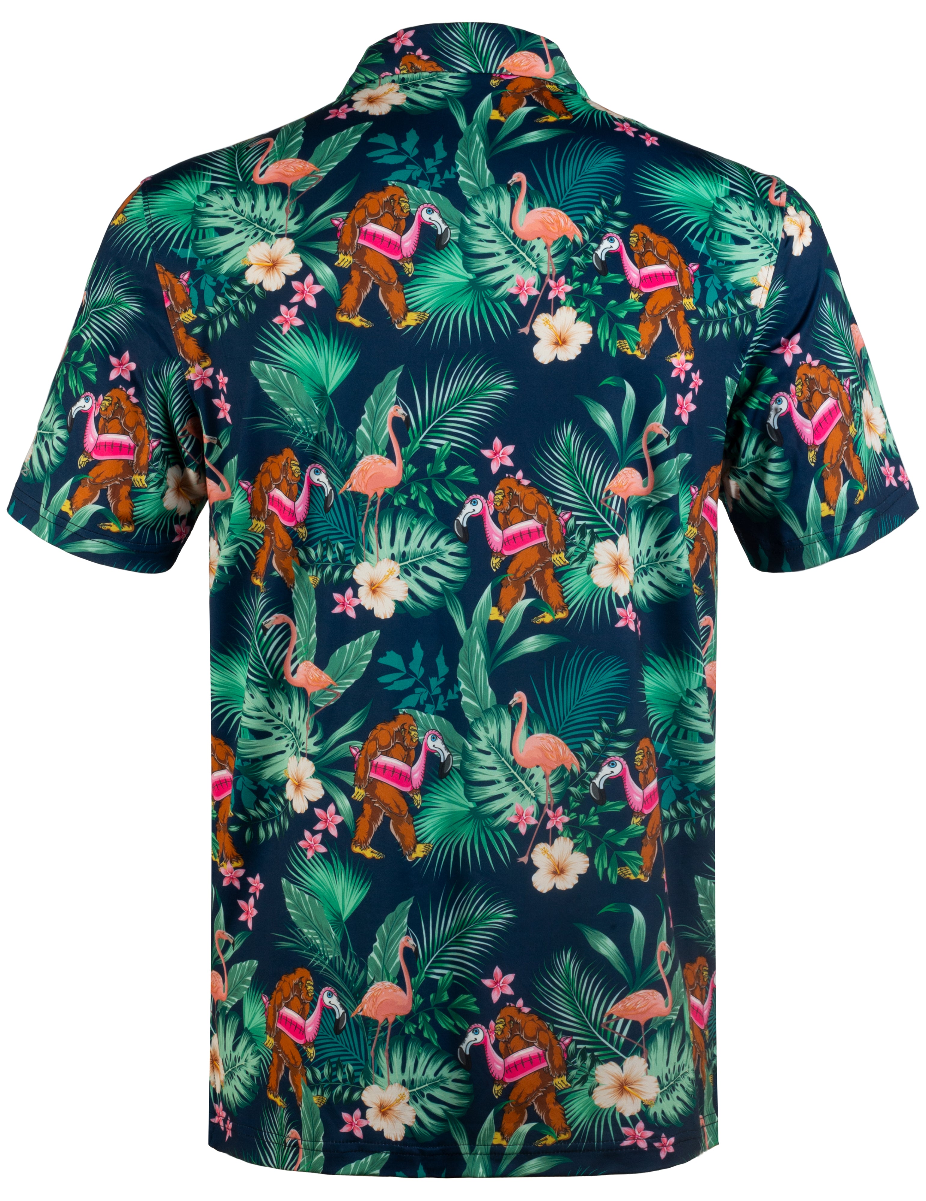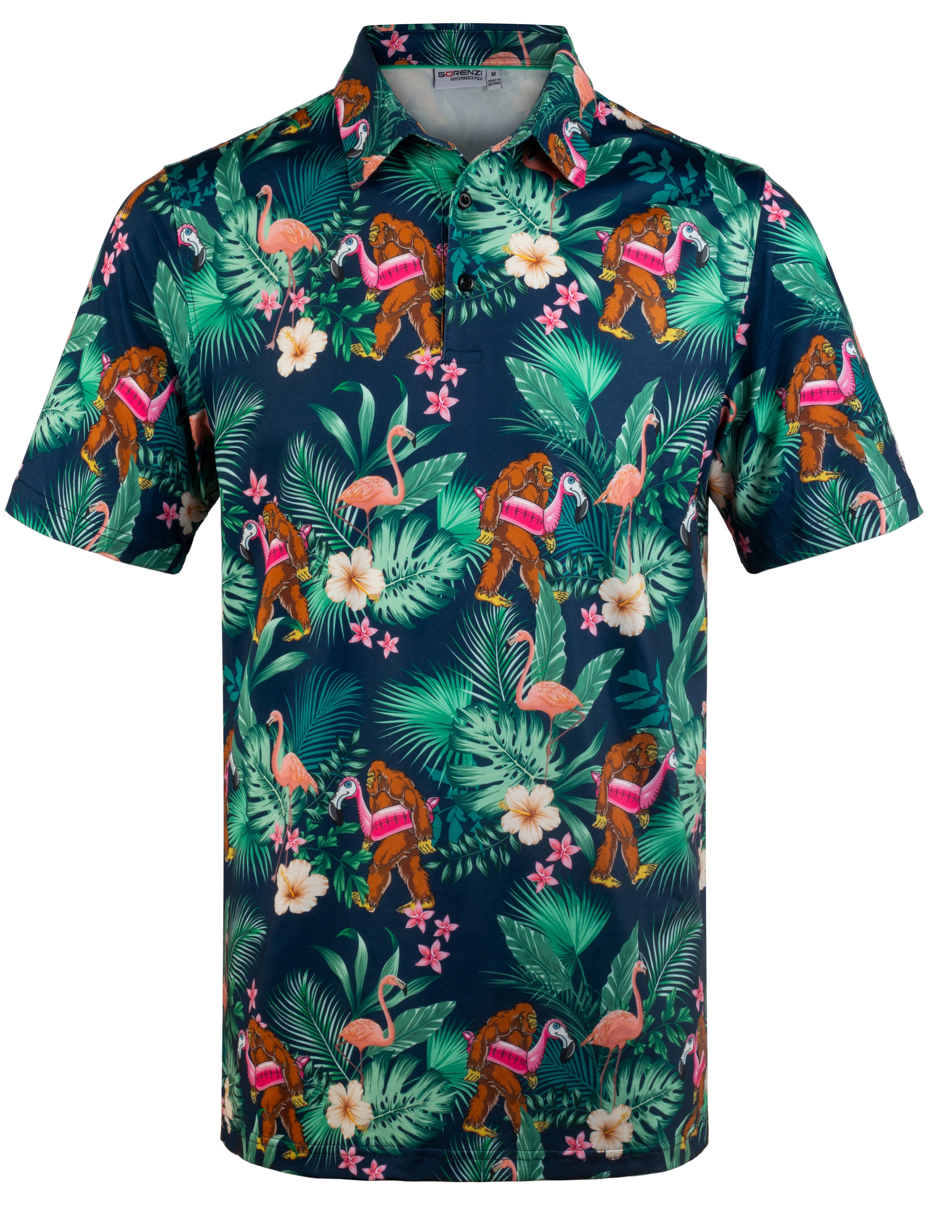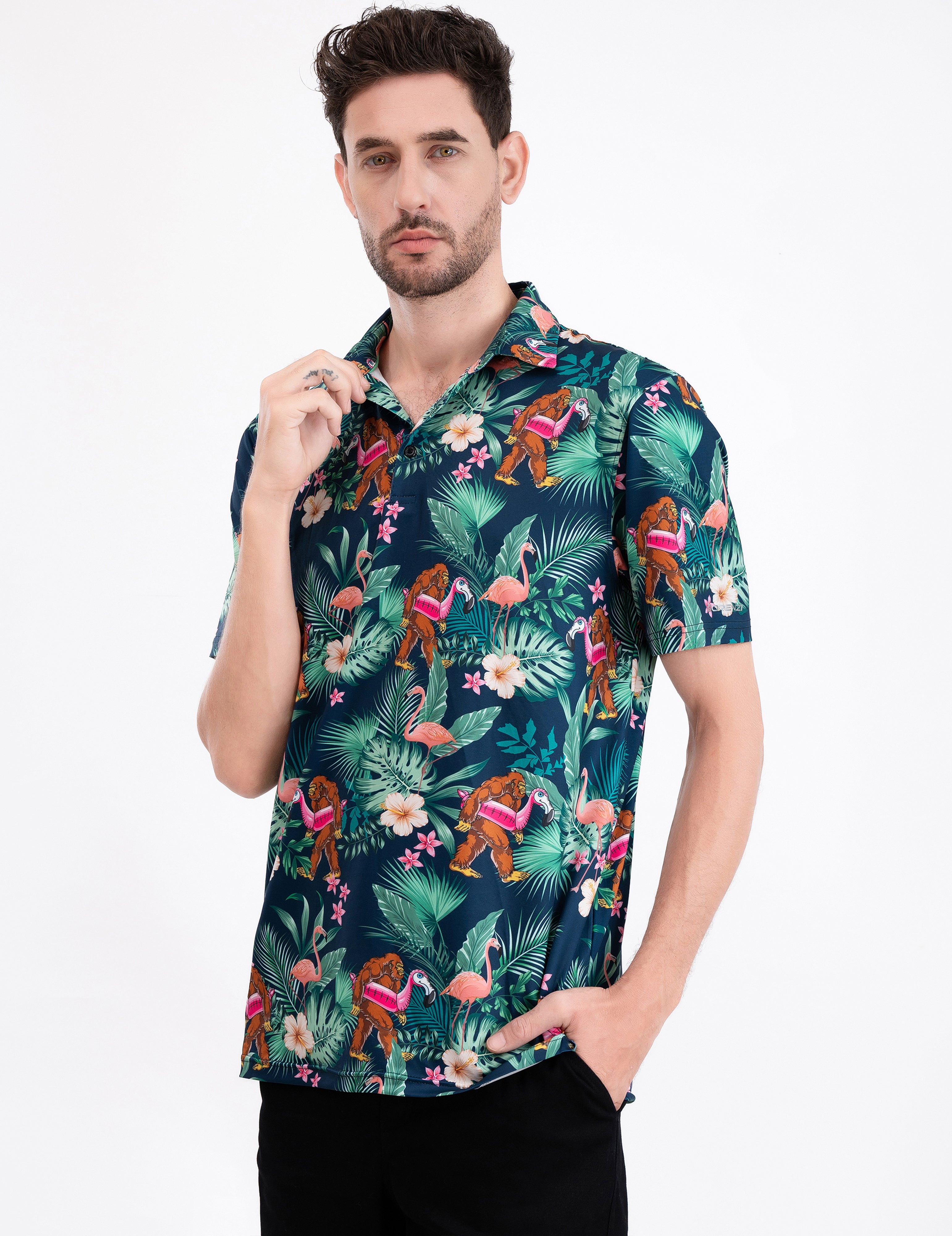 Green Bigfoot Floral Tropical Golf Polo Shirt for Men