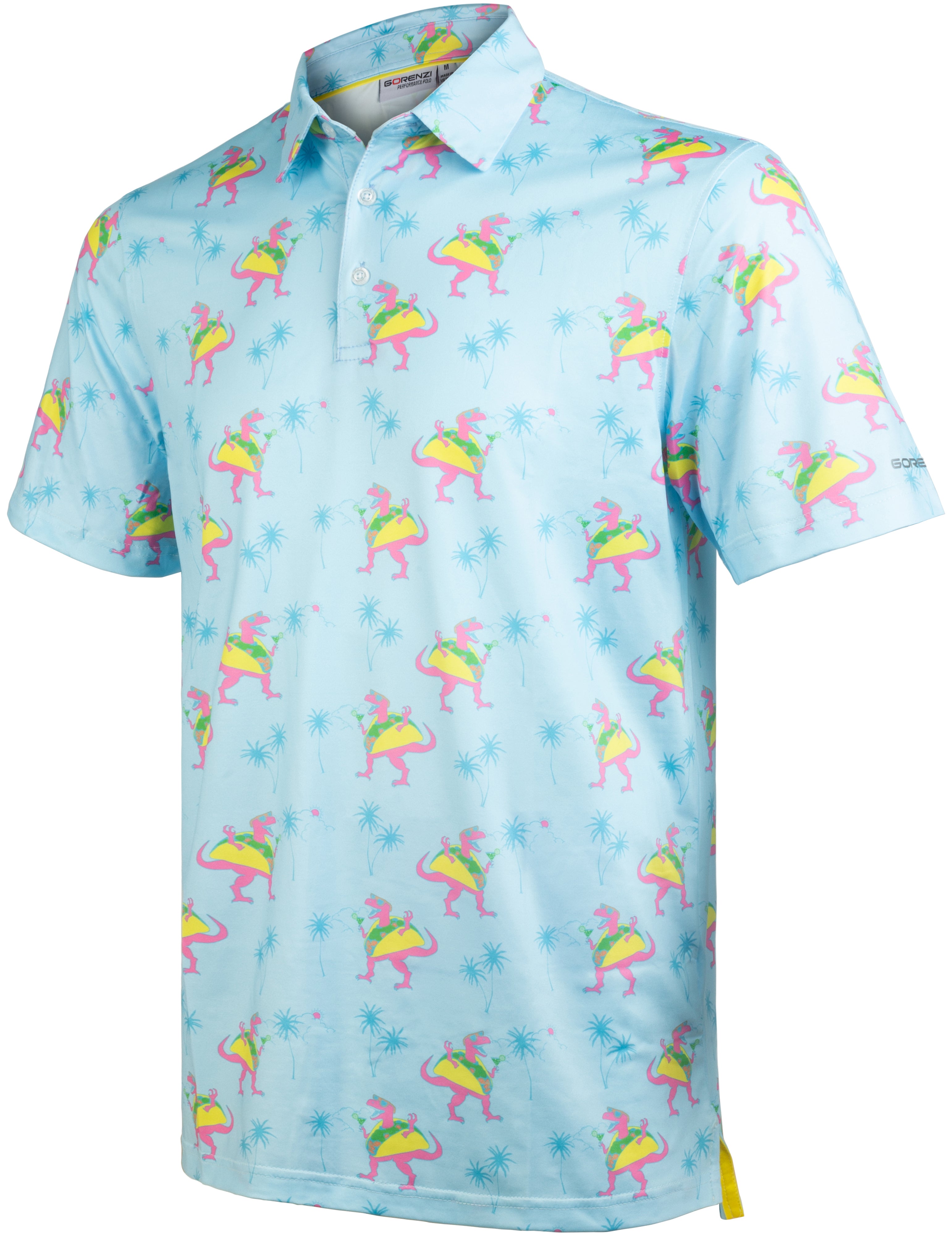 Turquoise Blue Taco Dinosaur Coconut Tree Golf Polo Shirt for Men