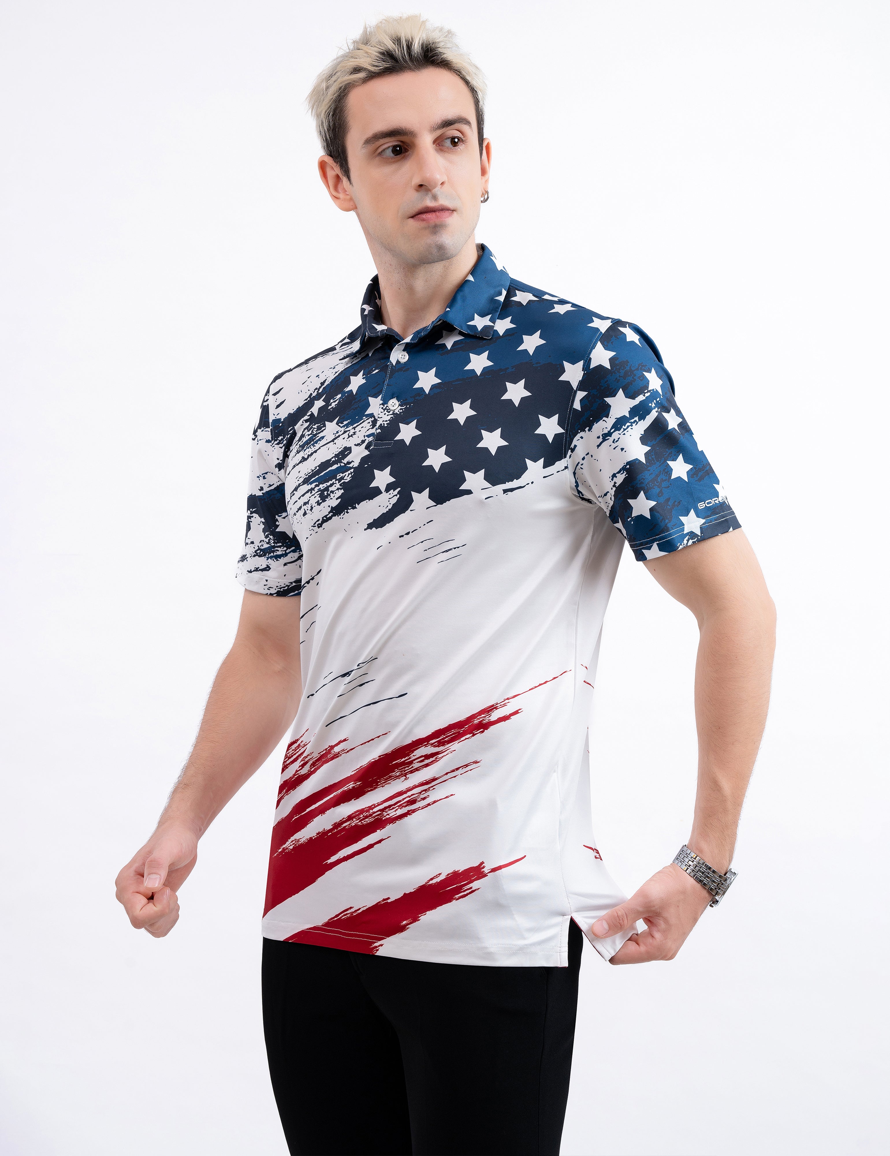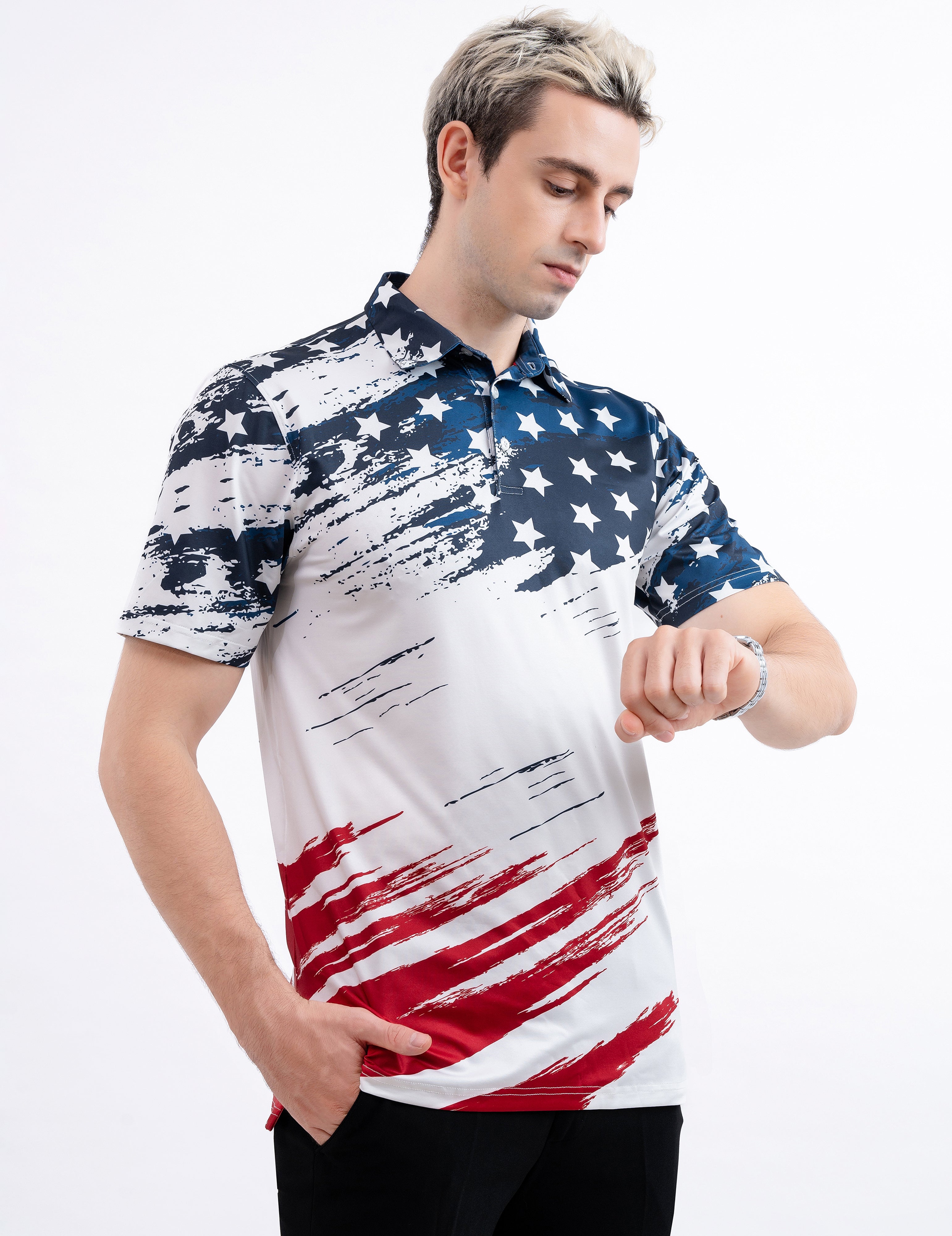 Patriotic USA Flag Golf Polo Shirt for Men