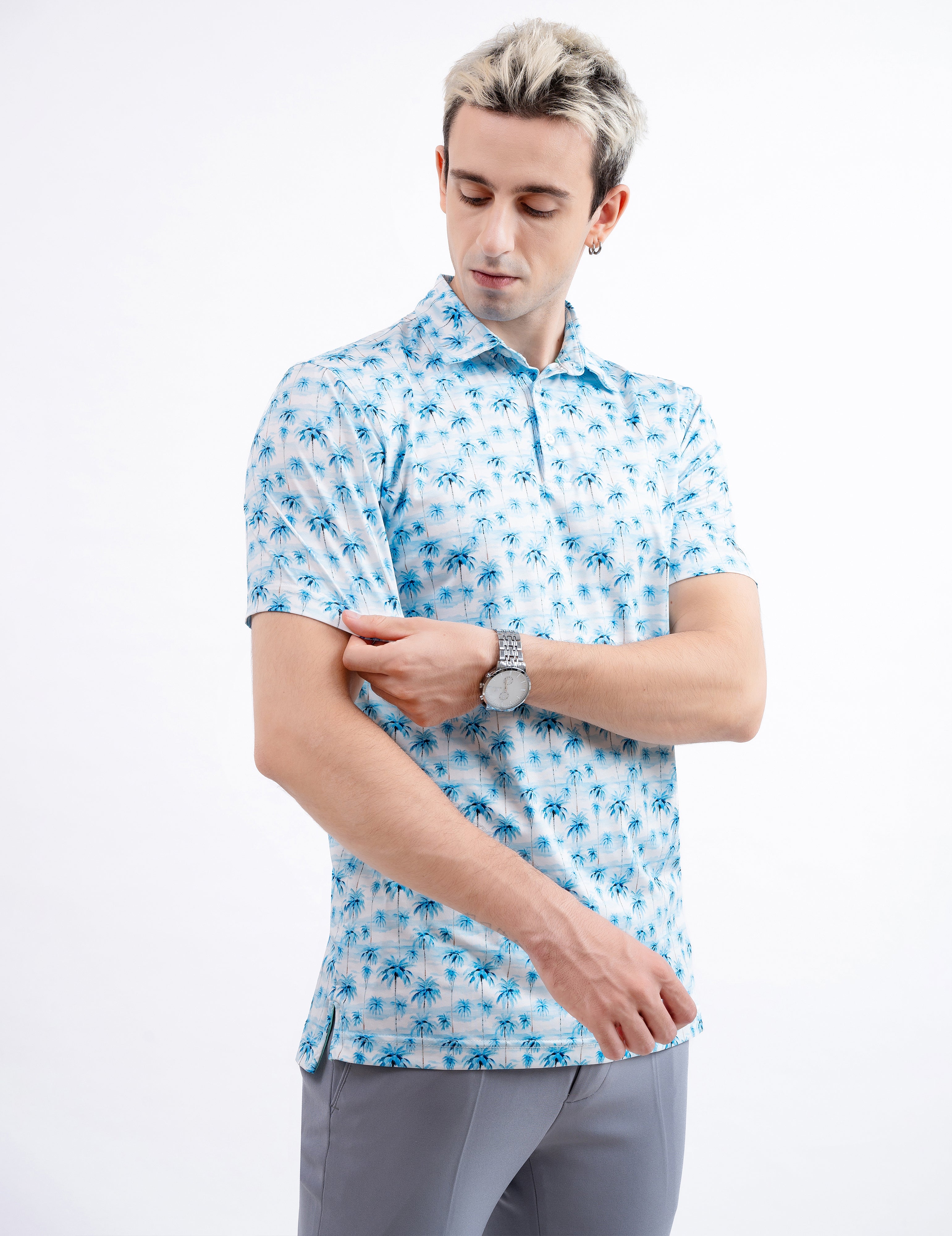 White Tropical Coconut Palm Tree Golf Polo Shirt for Men