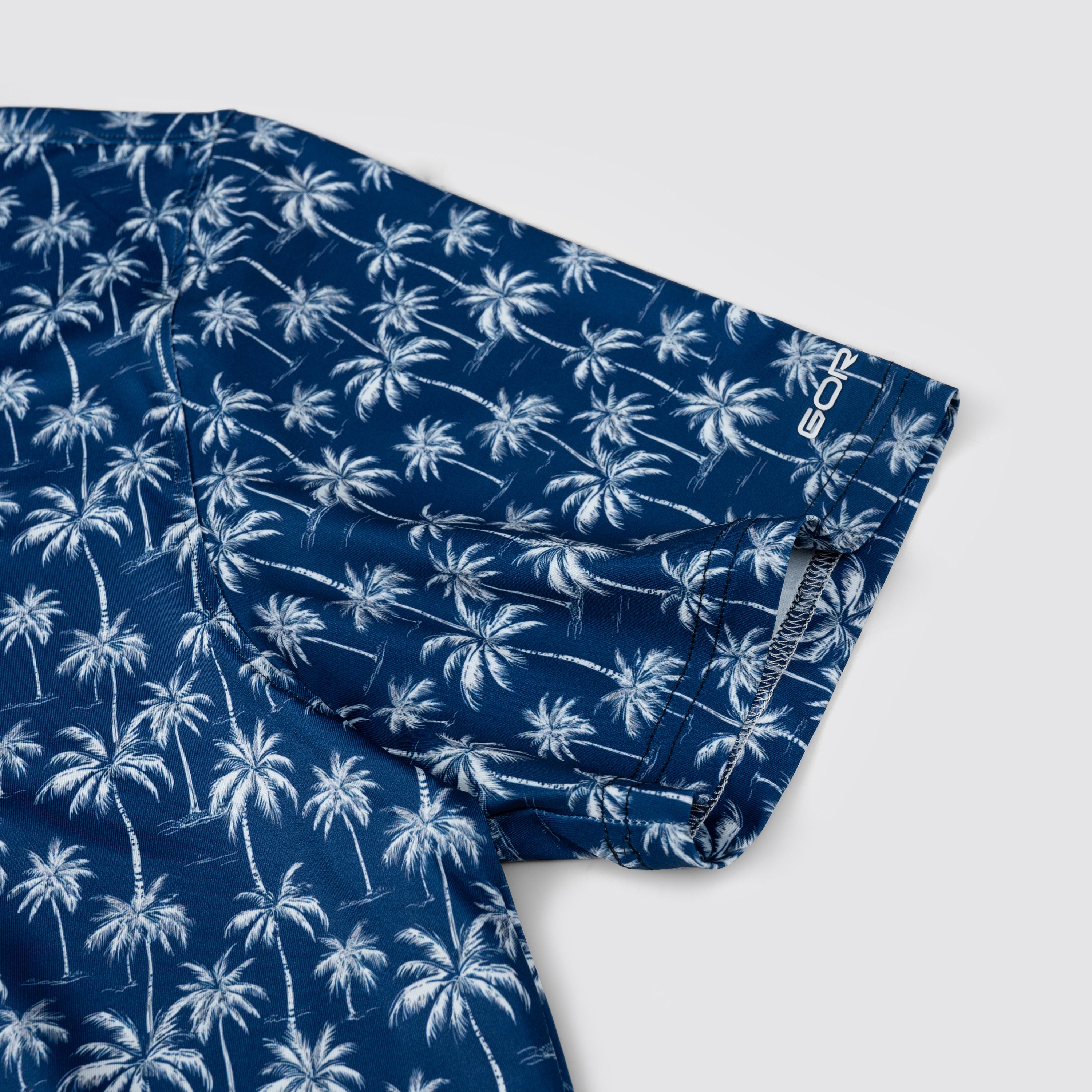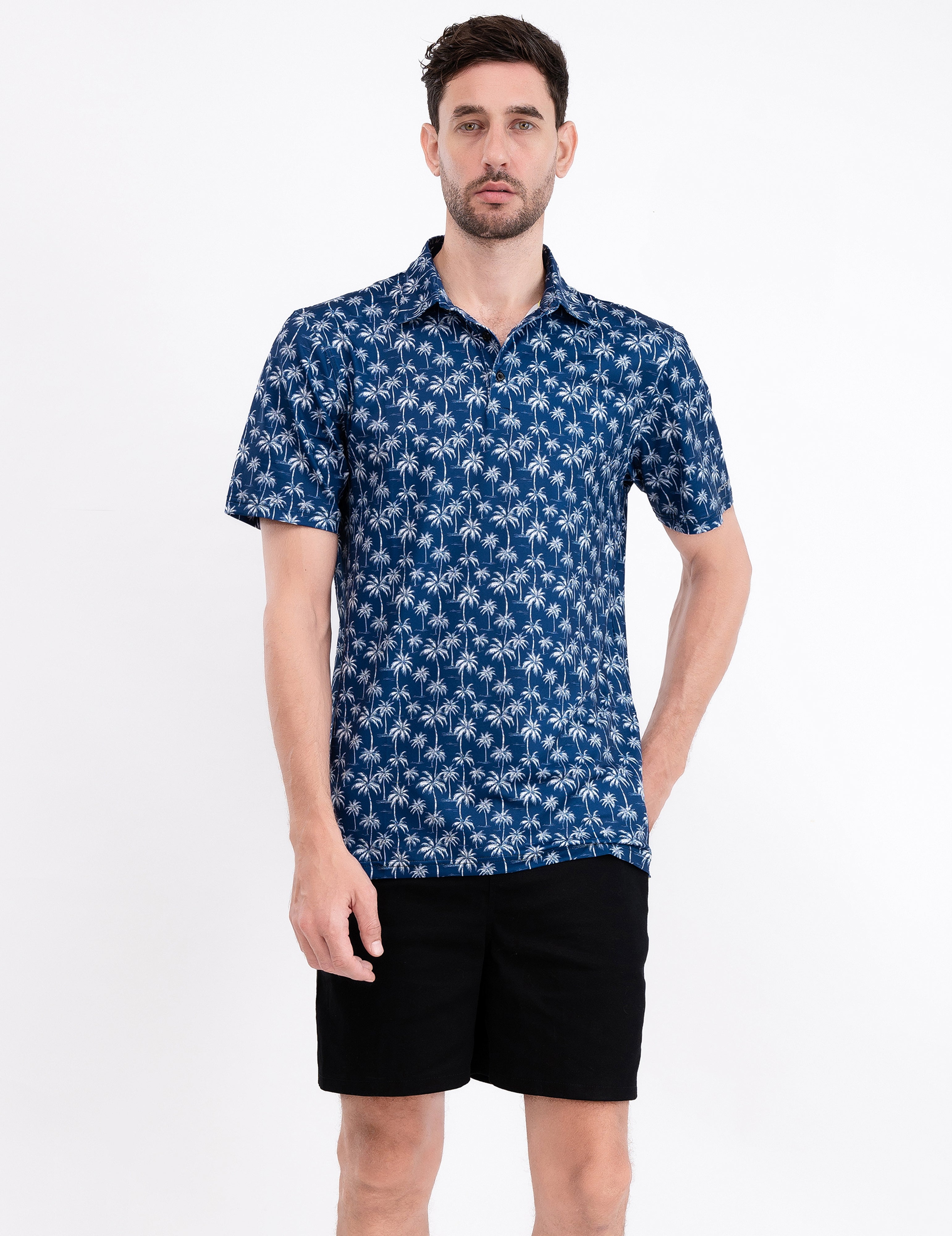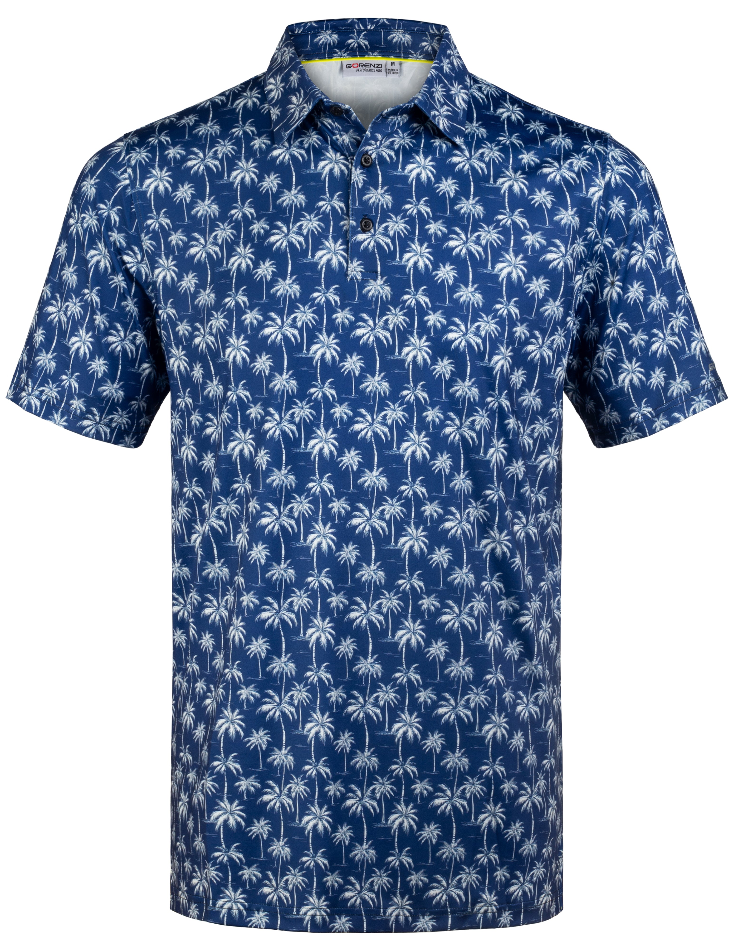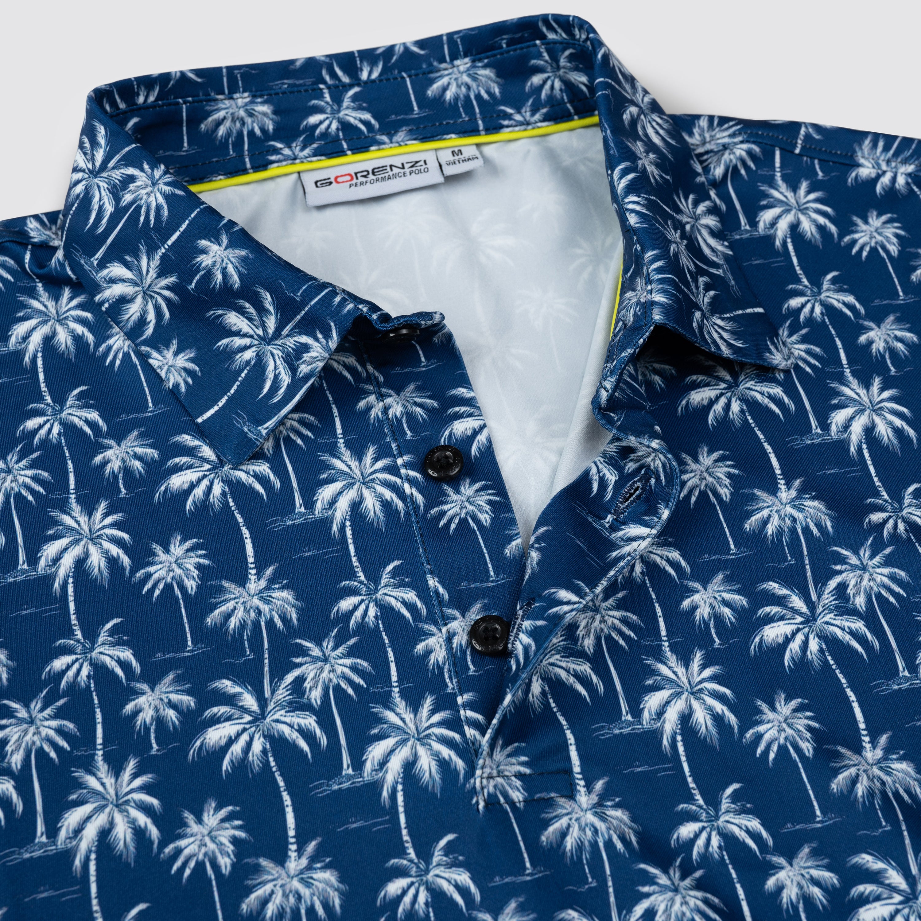 Navy Tropical Coconut Palm Tree Golf Polo Shirt for Men